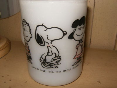 Vintage Peanuts Snoopy Mug Fire King Federal Milk Glass