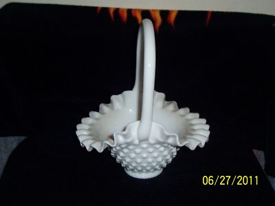 "FENTON" WHITE MILK GLASS HOBNAIL BASKET