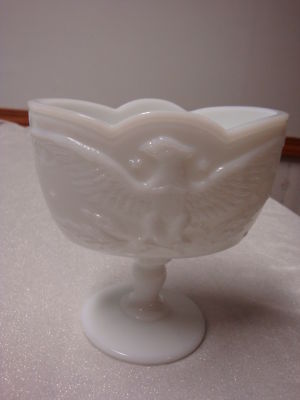 VINTAGE MILK GLASS L E SMITH FOOTED EAGLE COMPOTE
