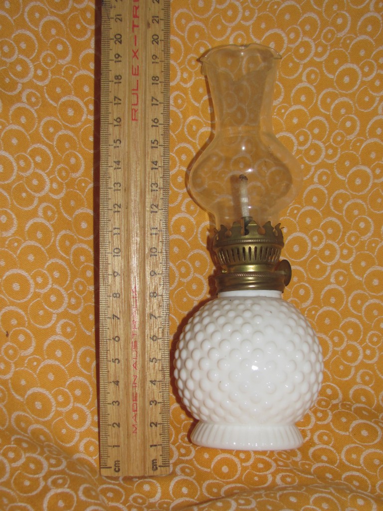 Vintage Fenton Milk Glass Hobnail Lamp w/Chimney 21 CmT