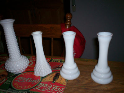LOT 4 VINTAGE MILK GLASS VASE HOBNAIL 2 BRODY 2 RANDALL