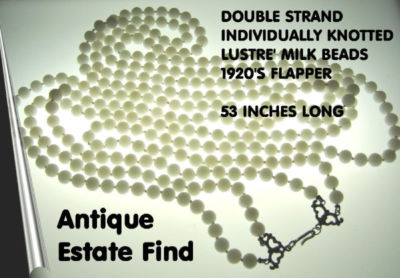 Antique 1920's MILK GLASS knotted LUSTER BEADS 53" OLD