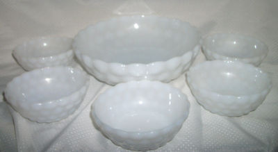 6pc VINTAGE PRESSED MILK GLASS ANCHOR BUBBLE BOWLS