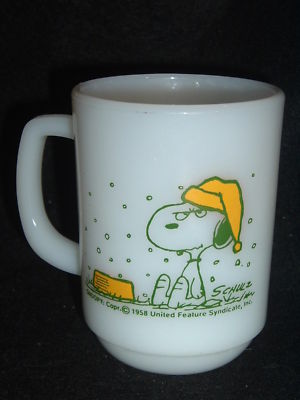 FIRE KING SNOOPY MILK GLASS MUG FRENCH TOAST VTG ~NICE~