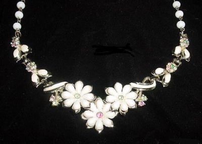VTG White Milk Glass Beads Flower Necklace Coro Pegasus