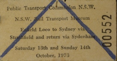 Railway ticket NSWGR RTM Enfield loco to Sydney 1973