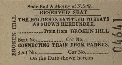 Railway ticket NSW SRA Broken Hill reserved seat issue