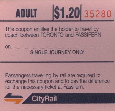 Railway tickets NSW Cityrail Toronto Fassifern railbus