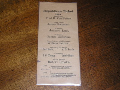 RARE 1889 REPUBLICAN TICKET HANNAFORD MAINE