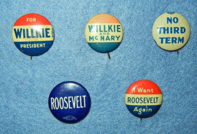 (5) Roosevelt (FDR) & Willkie-McNary Pinback Buttons