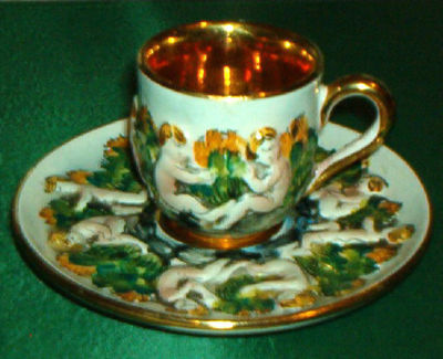 CAPODIMONTE ITALY 738 SIGNED CUP SAUCER VINTAGE