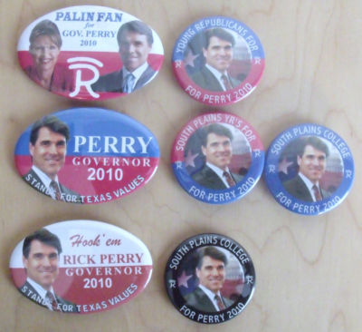 Title (ebay affiliate link): Rick Perry For Texas Governor 2010 - 7 Buttons
