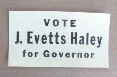 Title (ebay affiliate link): J. Evetts Haley For Texas Governor Window Sticker 1956