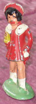 ANTIQUE BARCLAY RED GIRL WITH BABY DOLL LEAD FIGURE TOY