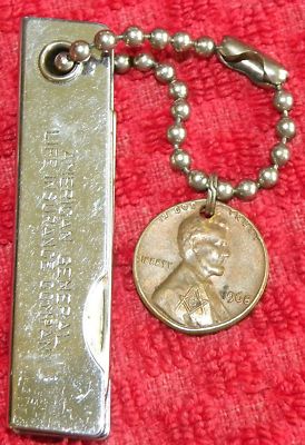 Title (ebay affiliate link): Vintage Liter Keychain Pocket Knife w/ Masonic Penny