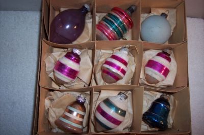 Title (ebay affiliate link): VINTAGE WAR & PRE WAR ERA GLASS CHRISTMAS ORNAMENTS