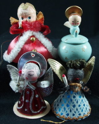 Title (ebay affiliate link): 4 Vtg Spun Cotton Chenille Black Angel Xmas Ornament