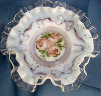Pretty Vintage Hand Painted Milk Glass Ruffle Bowl