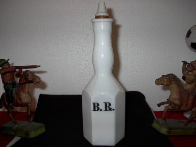 VINTAGE MILK GLASS BARBER BOTTLE HAIR TONIC LOTION NICE