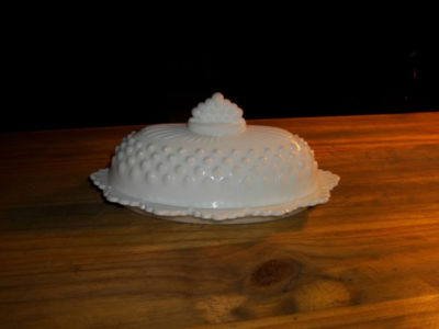 FENTON HOBNAIL MILK GLASS COVERED BUTTER DISH