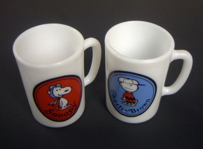 2 1969 Avon Milk Glass Mugs Cups Charlie Brown & Snoopy