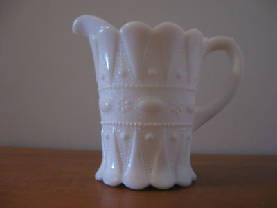 Milk Glass Lace & Dewdrop Beaded Jewel Creamer Pitcher
