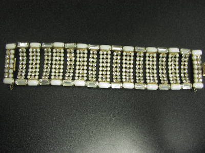 Wide Milk Glass And Rhinestone Bracelet D & E Juliana ?