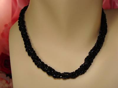 Vintage Art Deco Braided Black Milk Glass Necklace