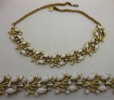 VINTAGE GOLD TONE & MILK GLASS NECKLACE