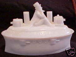 Old Uncle Sam on Battleship Milk Glass Covered Dish