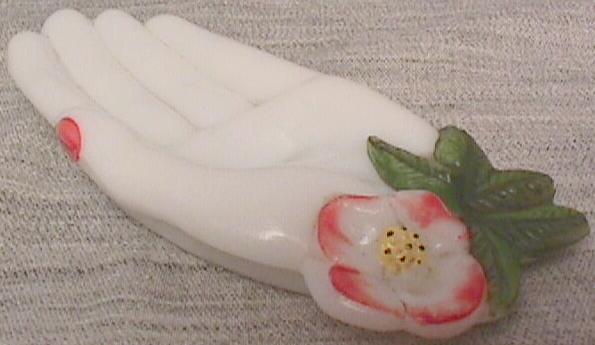 Lovely Hand Painted Milk Glass Hand Motif Pin Tray