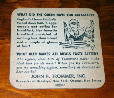 Trommers Queen Elizabeth 3.5 Beer Coaster