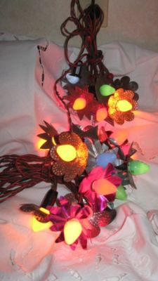 Title (ebay affiliate link): 5 Strands Vtg Xmas Lights Aluminum & Punch Tin Relfect