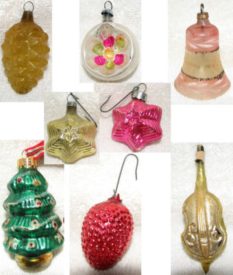 Antique Blown GLASS Xmas Tree Ornaments LOT of 8