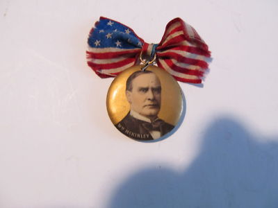 William McKinley campaign button with ribbon