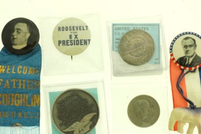 VINTAGE FRANKLIN ROOSEVELT CAMPAIGNE BUTTONS & COINS
