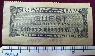 Title (ebay affiliate link): Vintage 1924 Democratic National Convention Ticket Stub