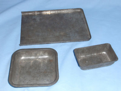 Lot 3 ~ Heavy Antique METAL Baking Pans Cookie Sheet