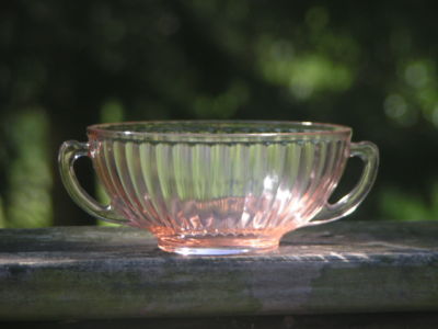 antique depression glass pink gravy bowl whandles mint