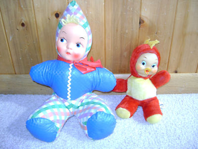 VINTAGE BABY DOLL ANIMAL FLOCKED JAPAN RUBBER FACE