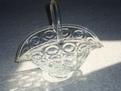 VINTAGE LARGE CLEAR GLASS BASKET WITH BULLSEYES