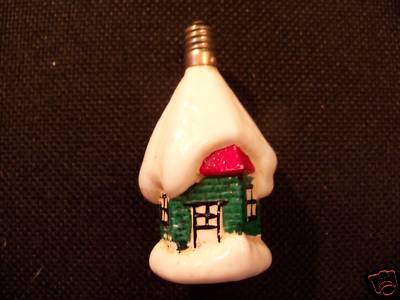 ANTIQUE CHRISTMAS LIGHT BULB SNOW CAP HOUSE MILK GLASS