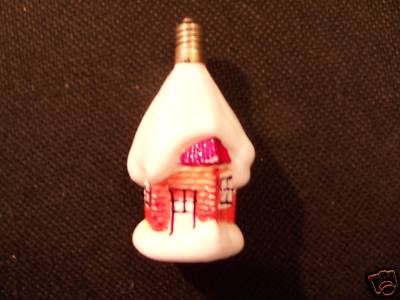ANTIQUE CHRISTMAS LIGHT BULB SNOW CAP HOUSE MILK GLASS