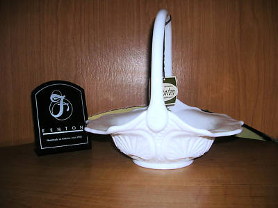 FENTON LARGE MILK GLASS BASKET stamped with logo NR