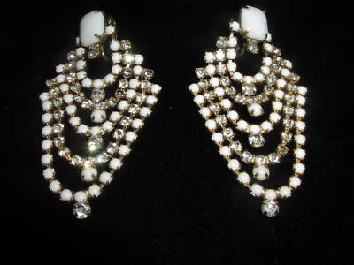 Milk Glass And Rhinestone Dangle Earrings D& E Juliana