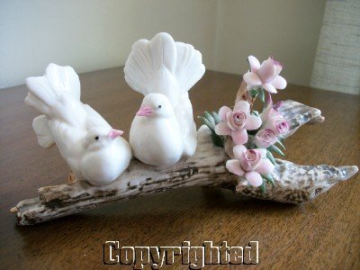 VINTAGE CAPODIMONTE 2 LOVEBIRDS ON LOG W PINK FLOWERS