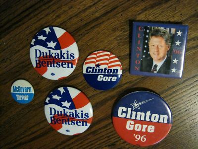 Title (ebay affiliate link): McGovern, Dukakis, Clinton Campaign Buttons