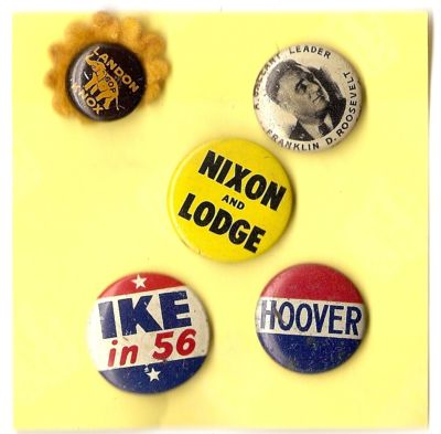 Title (ebay affiliate link): FIVE VINTAGE PIN BACKS - IKE-HOOVER-FDR-LANDON-NIXON