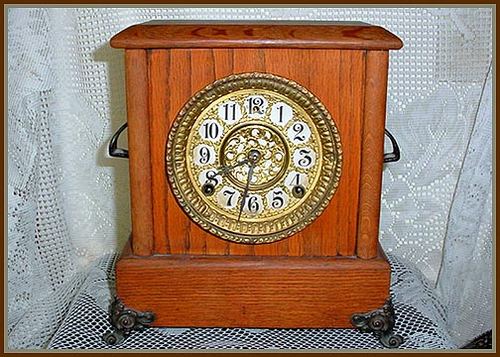 Antique Oak Fancy Dial New Haven Mantle Clock