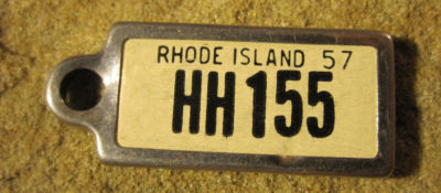 Vintage 1957 Rhode Island License Plate Keychain DAV